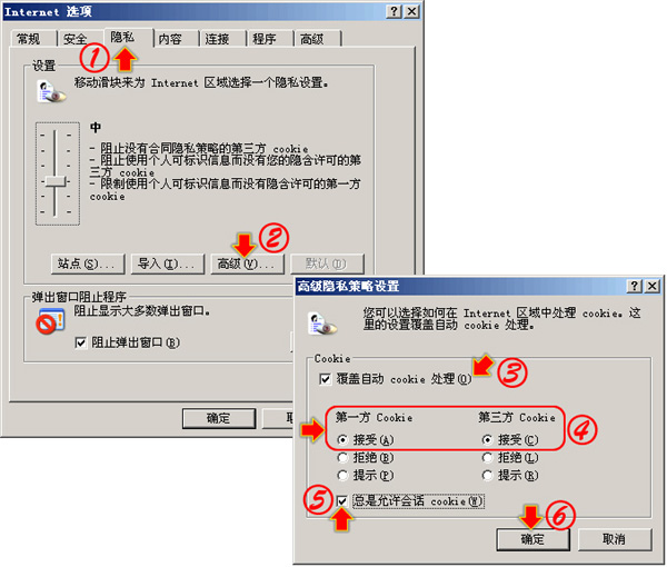 (3)如果您使用的是IE 8.0版本,請(qǐng)按如下操作設(shè)置cookie。